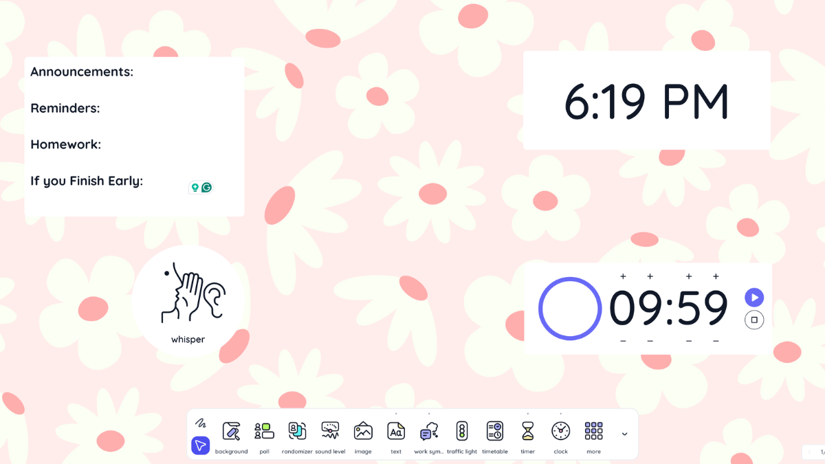I personally use ClassroomScreen because it allows me to display: